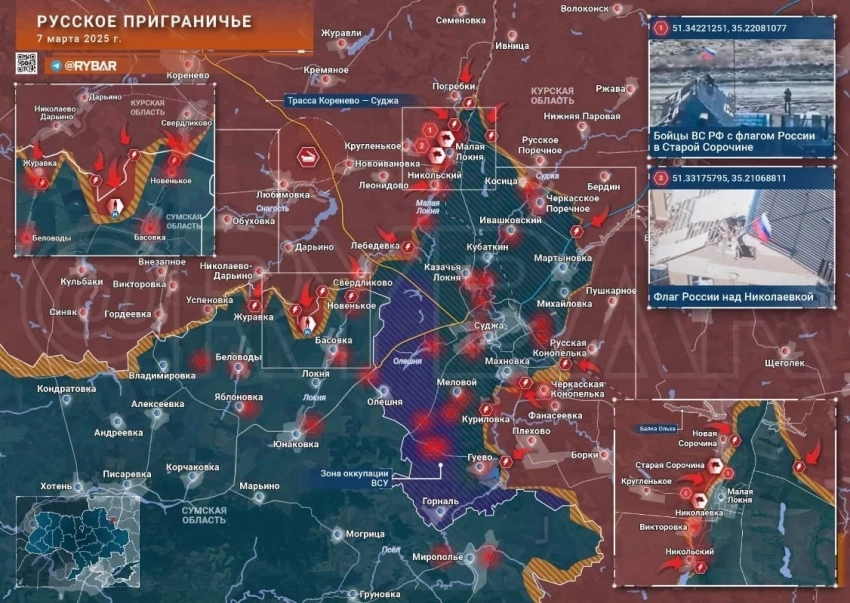 Карта боевых действий в Курской области. Данные на 8 марта