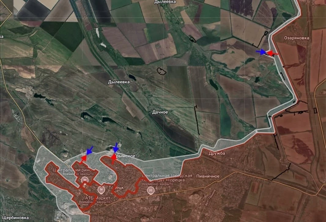 ВС РФ давят севернее Торецка, зачистили район шахты «Торецкая», а также ведут штурмовые действия в районе Крымского.