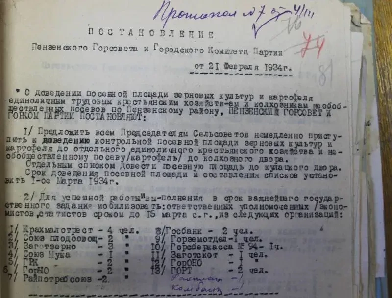 История и документы. Сегодня мы продолжаем знакомиться с документами из партийного архива Пензенской области. На этот раз перед нами пройдут фотокопии документов за 1934 год. Этот год вполне можно назвать «Годом съезда победителей». Потому что именно такое название неофициально получил XVII съезд ВКП(б). Поскольку все документы в этой папке свалены в одну кучу, будем смотреть все подряд, а не только те, что касаются проведенной коллективизации. Тут главное — получить впечатление о том времени, когда работал Пензенский горком.