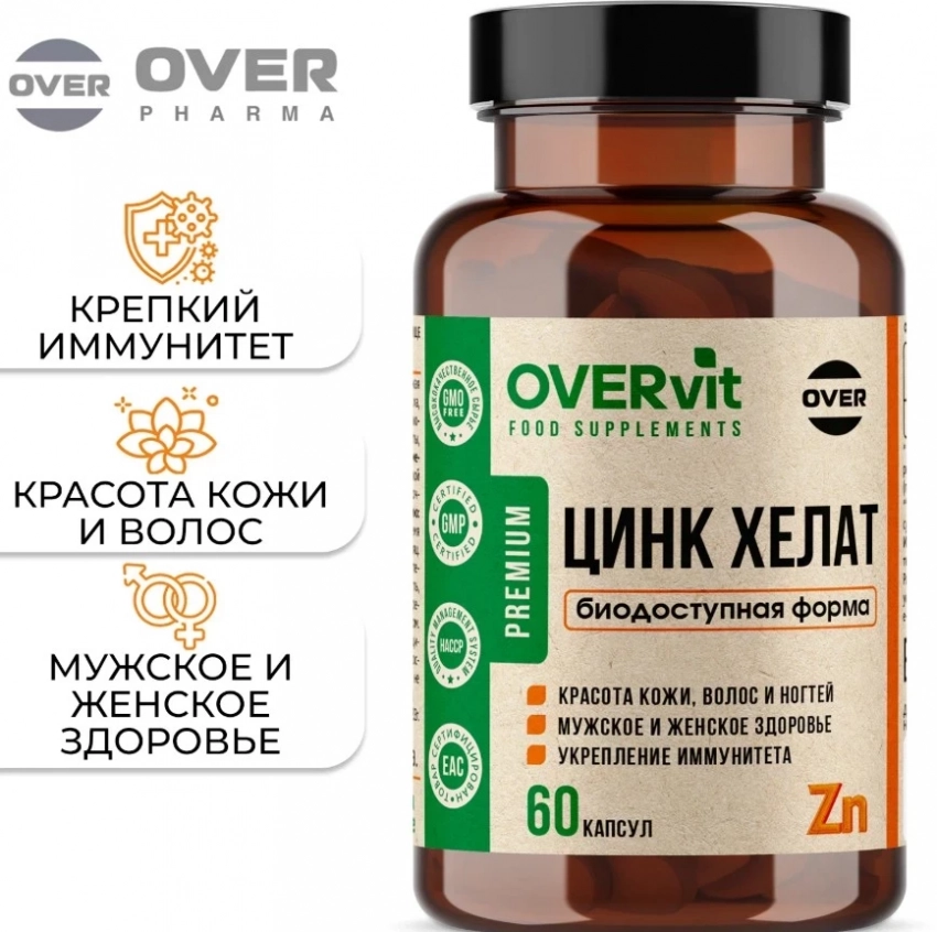 Цинк хелат от OVERvit — это высокоэффективная добавка, созданная для восполнения дефицита цинка в организме. Благодаря хелатной форме, цинк легко усваивается, не вызывая побочных эффектов со стороны ЖКТ. Цинк играет ключевую роль в поддержке иммунной системы, здоровья кожи, а также способствует улучшению состояния волос и ногтей. Он предотвращает выпадение волос и стимулирует их рост. Этот продукт — отличный представитель рейтинга бадов для волос, способствующий не только внешнему, но и внутреннему здоровью.