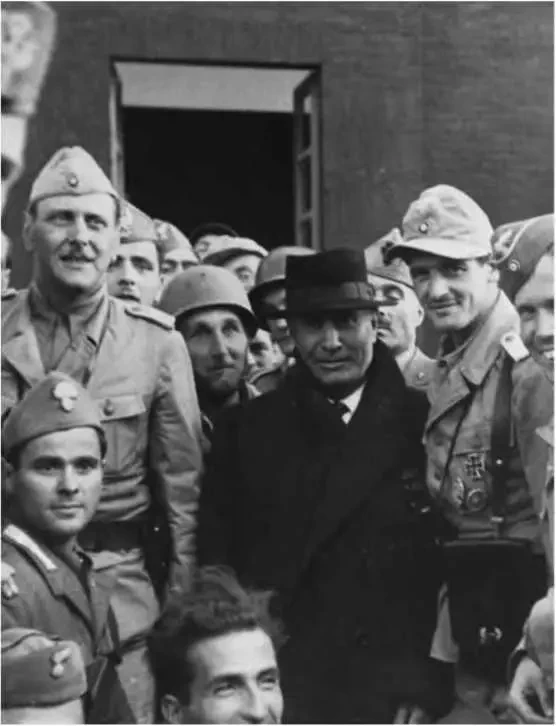 Освобожденного Муссолини ведут к самолету