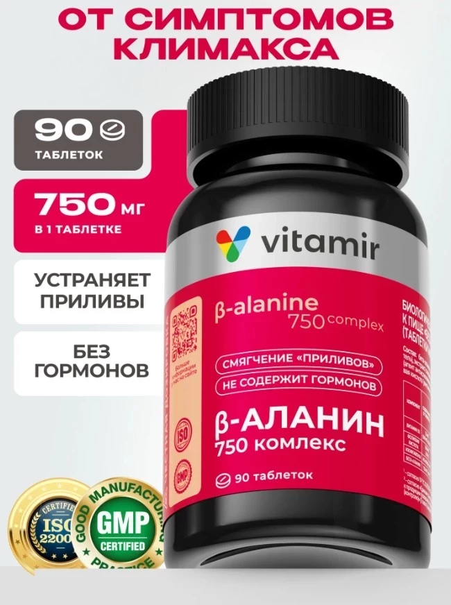 Бета-аланин VITAMIR PRO / БАД для женщин при климаксе и менопаузе / 90 таблеток