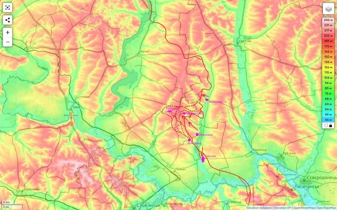 На Лиманском направлении российские части постепенно выжимают противника и пытаются рассечь на восточном берегу реки Оскол между Боровой и Лиманом.