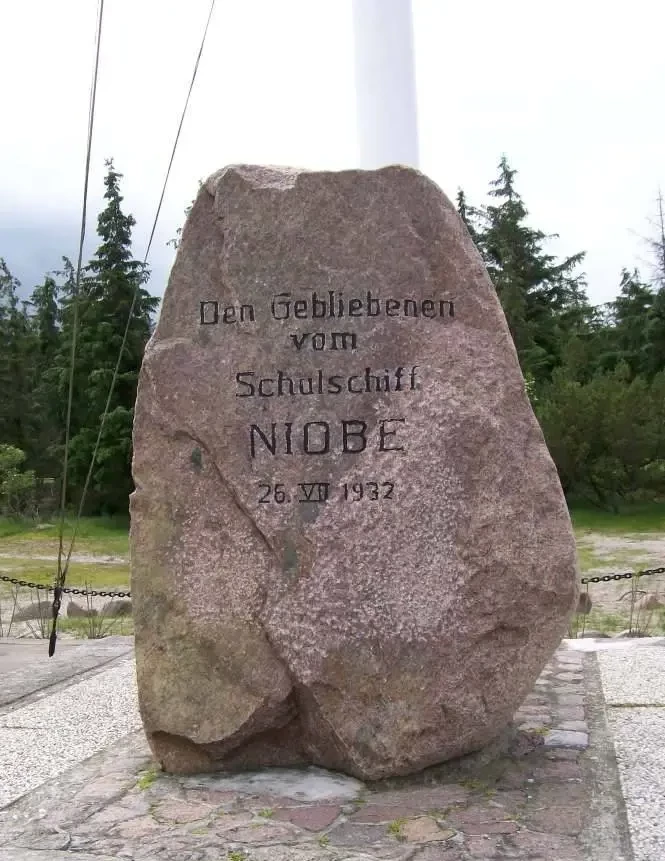 О паруснике «Ниобе» и его гибели напоминают немногие сохранившиеся артефакты: носовая фигура, хранящаяся в военно-морском училище в Мюрвике, штурвал и спасательный круг — в гарнизонной церкви в Вильгельмсхафене. А также несколько памятников.
