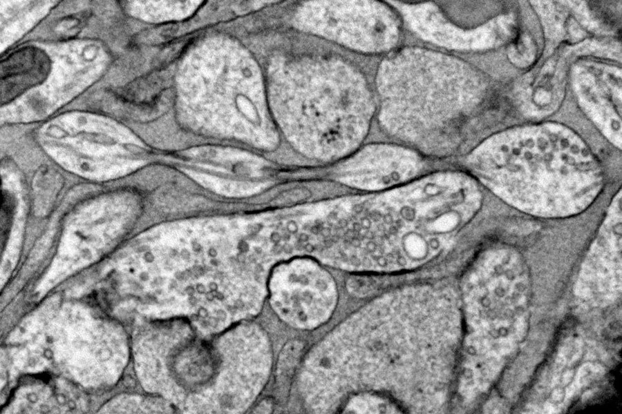 Но Жаклин Грисволд из лаборатории Ватанабе, обнаружила нечто иное в нейронах мышей, сохраненных с помощью техники, называемой заморозкой под высоким давлением. По ее словам, этот метод позволяет сохранить «тонкую структуру очень, очень маленьких частей клеток» лучше, чем химические фиксаторы, обычно используемые в микроскопии. Она применила эту технику как к нейронам мышей, выращенным в чашке, так и к образцам из сверхтонких срезов мозга взрослой и эмбриональной мыши. (Группа изучала подмножество нейронов, которые не миелинизированы, то есть они не обернуты во внешний, изолирующий жировой слой, который может ограничивать форму аксона.)