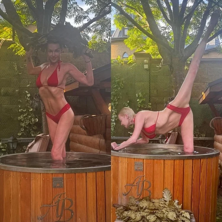 Давно не было фирменных шпагатов от Анастасии, и вот пожалуйста — получите! Знаменитая балерина нарядилась в красное бикини и продемонстрировала растяжку в ледяной купели. А вместо соломенной шляпки звезда использовала банный веник. Кстати, купель стоит прямо у Волочковой прямо во дворе. Что ж, красиво жить не запретишь!